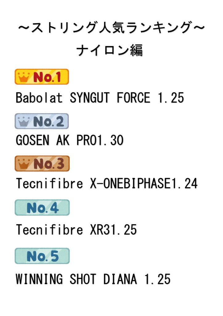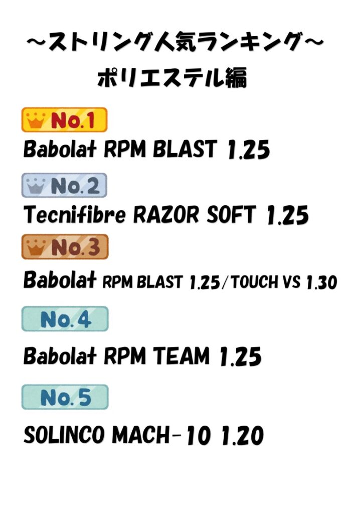 ポリエステルでは、ジャパンオープンを制したアルカラス選手が使用している「RPM TEAM」がランクイン!といった結果になりました。