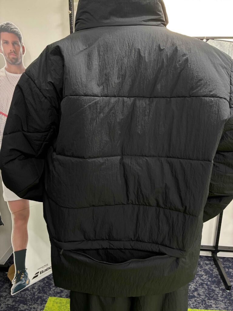 画像のジャケット(ベージュとブラックの2着)は、BABOLAT(バボラ) VS PADDED JACKET(BUT5160)です。