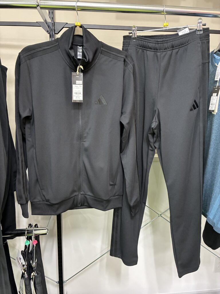 ラインがホワイトカラーだとジャージ感満載ですが、黒x黒と同色なのですっきりとしたスタイリングに仕上げることが可能です。年配の方にも大変好評なウェアです。