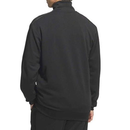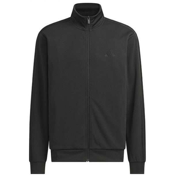 スリーストライプス(Three stripes 3本線)やロゴも同色のブラックでファスナー(ジップ)開閉仕様。普段着の快適さと実用性を備えた、レギュラーフィットのジャージです。