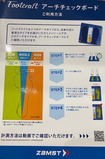 FootcraftはLOW/MIDDLE/HIGHの3つのアーチタイプから自身の足に合ったものを選べるインソールです(*^^)v