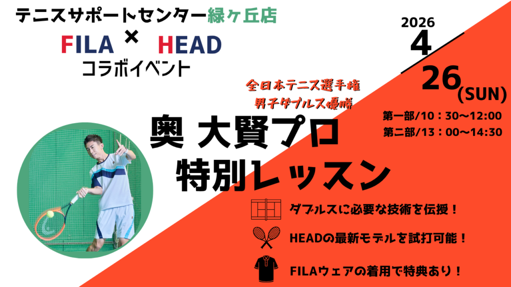 【4月26日 イベント情報】FILA×HEAD 奥大賢プロ特別レッスン