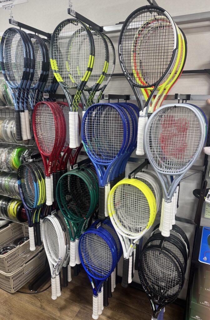 こんにちは!スタッフ村山です。テニスサポートセンター緑ヶ丘店には試打コーナーがあります。